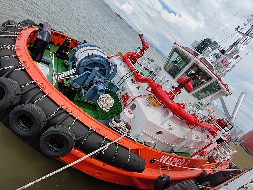 該三艘工作船是WAPCO公司專門(mén)為尼貝項(xiàng)目海上作業(yè)和海上設(shè)施運(yùn)行維護(hù)而量身打造,全部入級(jí)法國(guó)船級(jí)社(BV),這三艘船除具備為油輪頂推拖拽功能外,還兼?zhèn)湎?、起拋錨、海上溢油圍控回收、海上應(yīng)急救援、物資供應(yīng)、海洋工程支持作業(yè)等綜合性船舶服務(wù)能力,是保障尼貝管道項(xiàng)目海上作業(yè)和海上設(shè)施安全平穩(wěn)運(yùn)行、實(shí)現(xiàn)原油裝船作業(yè)的關(guān)鍵設(shè)備。