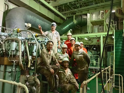 在機(jī)艙里,每一位輪機(jī)員就像老大哥一樣特別親切,有什么問題只要你問,他們都會(huì)耐心地給你解答,業(yè)余時(shí)間我們也會(huì)坐在一起聊聊天、打打牌、釣釣魚。大家其樂融融,相處得十分融洽。