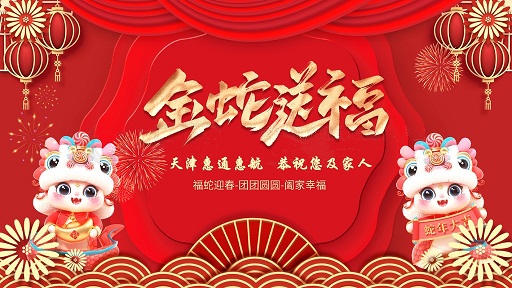 祥龍辭舊,靈蛇迎新!值此農(nóng)歷乙巳年新春佳節(jié)來臨之際,我謹(jǐn)代表天津惠通、惠航公司,向長期以來關(guān)心支持公司發(fā)展的廣大客戶、合作伙伴和社會各界朋友,向在過去一年里拼搏奮斗的每一名船岸員工以及退休干部員工、職工家屬致以誠摯問候和新春祝福!祝大家蛇年大吉,巳巳如意!