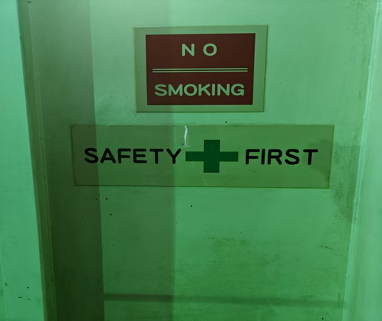 而在日常工作中安全更是從處處小事和細(xì)節(jié)中體現(xiàn)。依稀記得,在我剛上船的時(shí)候,由于是在船廠登船,機(jī)艙四處都充滿著船廠的工人,敲擊聲、切割聲此起彼伏。一個(gè)平靜的午后,我休息過(guò)后離開(kāi)房間通往機(jī)艙上班,遠(yuǎn)遠(yuǎn)望去通往機(jī)艙那陡峭的樓梯,讓我這初入職場(chǎng)的菜鳥(niǎo)不由得心生恐懼,每次下樓梯時(shí)我的雙手都會(huì)緊緊地握住樓梯扶手,但就是這么一個(gè)簡(jiǎn)單的動(dòng)作也發(fā)生了一次“安全事故”。我在下樓梯的過(guò)程中,樓梯扶手焊接處不知何時(shí)焊口斷裂,鋒利的扶手?jǐn)嗔烟幩查g刺入我的手指,而劇烈的疼痛讓我瞬間清醒。我強(qiáng)忍著痛意,從工作服口袋中掏出手套簡(jiǎn)單包扎,同時(shí)意識(shí)到問(wèn)題的嚴(yán)重性:安全管理體系的貨船上,這樣的安全隱患隨時(shí)可能造成更嚴(yán)重的事故。我馬上跟師父匯報(bào),及時(shí)通知給機(jī)艙的弟兄們,避免引起不必要的安全事故,并設(shè)立安全警示標(biāo)志,粘貼提示標(biāo)語(yǔ)。經(jīng)過(guò)排查,船廠工人在搬運(yùn)大型管路備件時(shí),因團(tuán)隊(duì)協(xié)作出現(xiàn)問(wèn)題導(dǎo)致備件撞擊樓梯扶手,扶手焊接處出現(xiàn)應(yīng)力集中,所以焊縫開(kāi)裂。在查明原因后,我們立刻對(duì)損壞的部分進(jìn)行打磨,重新焊接加固,并對(duì)所有連接部位進(jìn)行檢查。這件事在我心里刻下了深深的烙印,日常工作中必須正確穿好工作服、工作鞋,并佩戴手套。