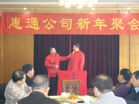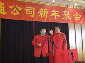 為增添新年聚會(huì)的熱烈氣氛,公司特意請(qǐng)來(lái)天津市曲藝團(tuán)的藝術(shù)家們登場(chǎng)獻(xiàn)藝。幽默的相聲、充滿天津地方韻味的天津時(shí)調(diào)和演員的反串表演贏得了大家的陣陣掌聲和開(kāi)懷的笑聲。演出當(dāng)中公司船員也登臺(tái)獻(xiàn)藝,他的模仿秀也受到了大家的歡迎。