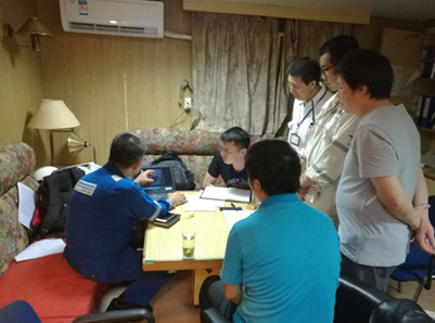 在臨時(shí)審核過程中,驗(yàn)船師對對船舶進(jìn)行體系文件進(jìn)行了非常細(xì)致的檢查,也對全船進(jìn)行了巡視,對審核過程中發(fā)現(xiàn)的問題與不足提出了建設(shè)性的意見和建議,為公司以后對船舶的管理提供幫助。最后,宣布“OCEAN TRADE”輪在安全管理體系、國際船舶保安規(guī)則、國際勞工公約方面符合公約和規(guī)則要求,給予頒發(fā) SMC/ISSC/MLC臨時(shí)審核證書。