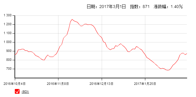 波羅的海貿(mào)易海運交易所干散貨運價指數(shù)周三上漲,因巴拿馬型船運費升至逾兩個月高位。