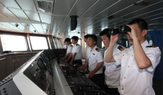 好在隨著日子一天天過去,我學到的東西越來越多,也與周圍人相處越來越融洽。平時航行時,我跟著水頭干活,水頭人很好,我有什么不會的總是手把手地交給我;靠港的時候我跟著一水值八到十二的班,這時候三副也值班,他是我學長,我有哪里做的不好的時候他總是兇巴巴地批評我,然后再一點一點給我講明白。跟我一起值班的一水也極好,他帶著我時無論做什么,都會一邊做一邊給我說明,慢慢地教我,生怕我有哪里不懂。
