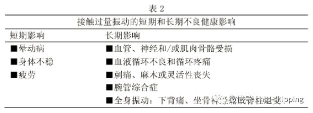 2) 振動(dòng)會因船舶的運(yùn)動(dòng)或靠近振動(dòng)的機(jī)器而影響整個(gè)身體,或者在使用振動(dòng)的工具時(shí)會集中于手和手臂。振動(dòng)會直接或間接地通過反射性肌肉活動(dòng)對身體結(jié)構(gòu)產(chǎn)生影響,從而會誘發(fā)以下不良健康影響。
