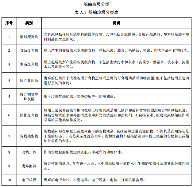 根據(jù)《國際防止船舶造成污染公約》附則V的2016年修正案,船舶將垃圾分為A至K類。