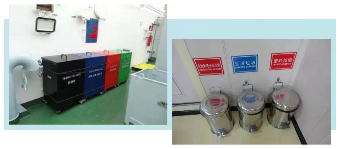 在廚房、船員個人房間、機艙、駕駛室以及會議室等公共場所均需要備有垃圾桶對垃圾進行分類存放。