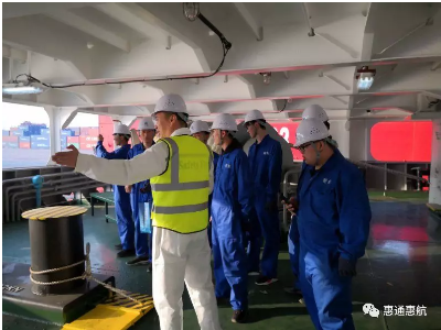 “加強校企合作,匯聚培養(yǎng)合力,提升學生職業(yè)競爭能力”。作為職教周的一部分,我司同天津海運職業(yè)學院緊密合作,于4月12日開展惠通課堂活動,安排該校輪機工程學院的7名優(yōu)秀學生代表在帶隊老師許裕東的帶領下于天津港登上 “弘泰227”輪,進行認識學習,現(xiàn)場感受船舶的真實環(huán)境。我司賈啟志船長和朱有順船長帶領學生現(xiàn)場觀摩船舶靠泊,為學員講解船舶設備和公司情況,向同學們提出期望和祝愿。在船的船員帶同學們參觀駕駛臺、船員生活區(qū)、集控室、機艙設備、系泊設備、消防救生設備。船員們?yōu)閷W生主要講解了主機、輔機、油水分離器、鍋爐、分油機等等主要機艙設備和值班要求,他們結合自身多年的工作經驗為同學們講解每個設備的功能,以及在實際工作中的注意事項,隨后同學們又對自己專業(yè)存在的疑惑請教輪機員。