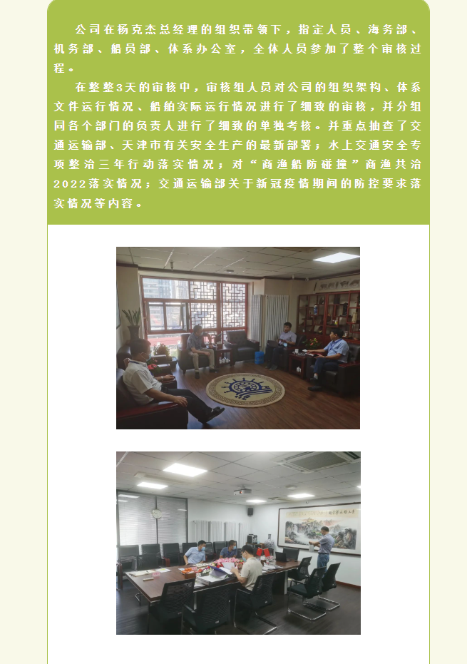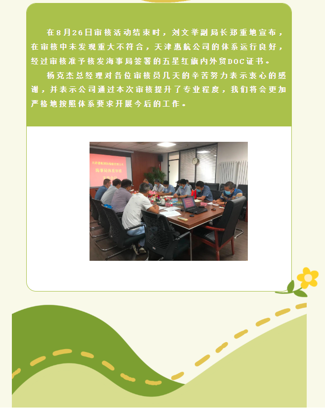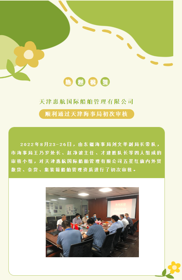 天津惠航國際船舶管理有限公司順利通過天津海事局初次審核 時間:2022-08-27 點擊:1609次 上一篇:天津海運職業(yè)學院“惠通班”中秋聯(lián)誼暨教師節(jié)慶?;顒蛹o實 下一篇:熱烈祝賀公司多位船長、輪機長榮獲香港長海公司頒發(fā)的安全榮譽獎!