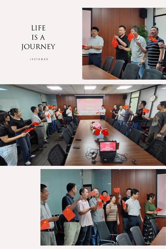 活動(dòng)中,公司全體員工齊聚在一起,揮舞著手中的國旗,用真摯嘹亮的歌聲訴說著祖國的光輝歷程和喜迎二十大的美好心愿?!拔液臀业淖鎳豢桃膊荒芊指?。無論我走到哪里,都流出一首贊歌……”飽含深情的歌聲,不斷揮舞著的五星紅旗,讓活動(dòng)氣氛愈加濃烈,每個(gè)人都盡情表達(dá)著對(duì)祖國最誠摯熱烈的感情。